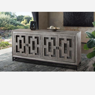 Bastille 76" 4-Door Solid Mango Wood Sideboard in Walnut Grey Finish w/ Black Iron Legs